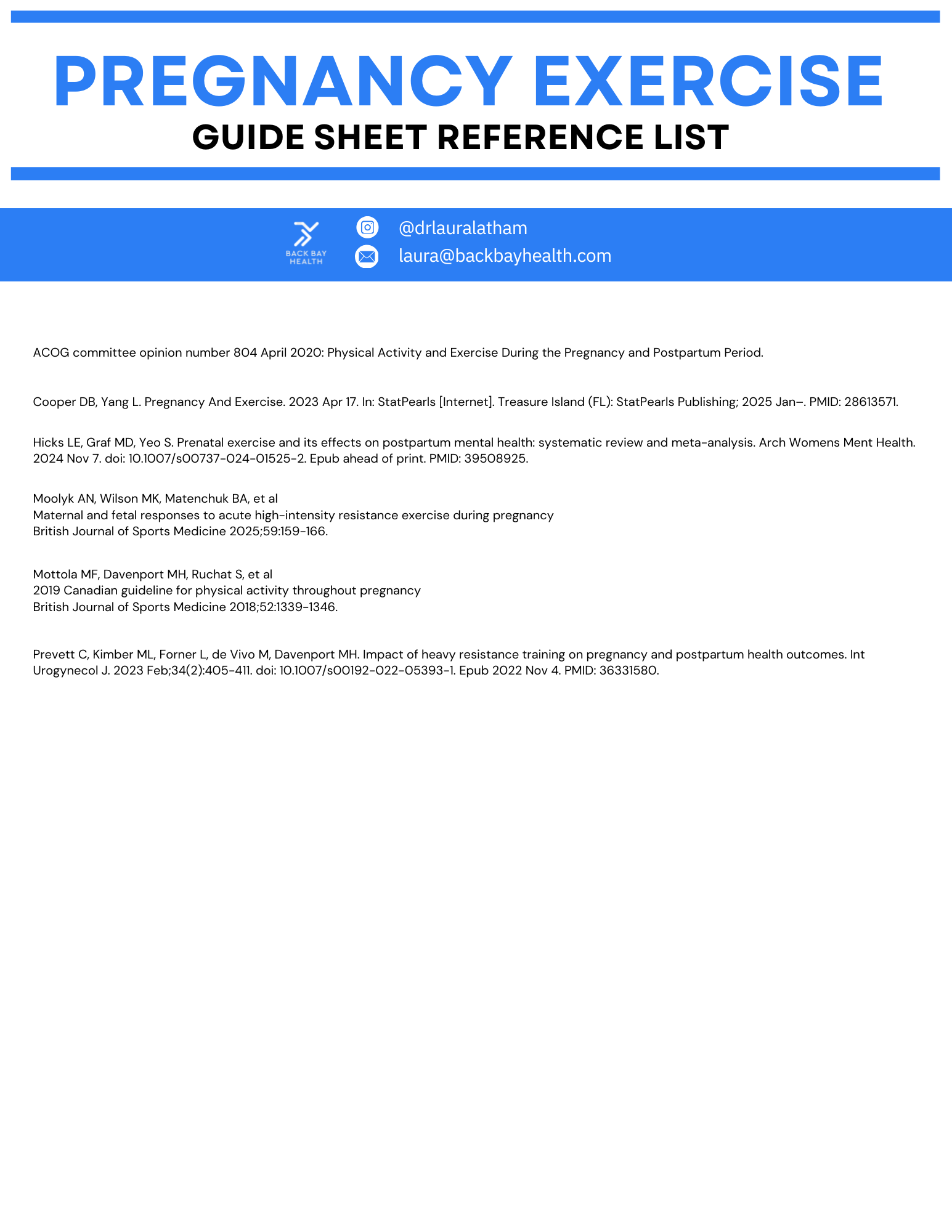 Pregnancy exercise guide sheet for those experience a normal healthy pregnancy as per May 2025 guidelines.